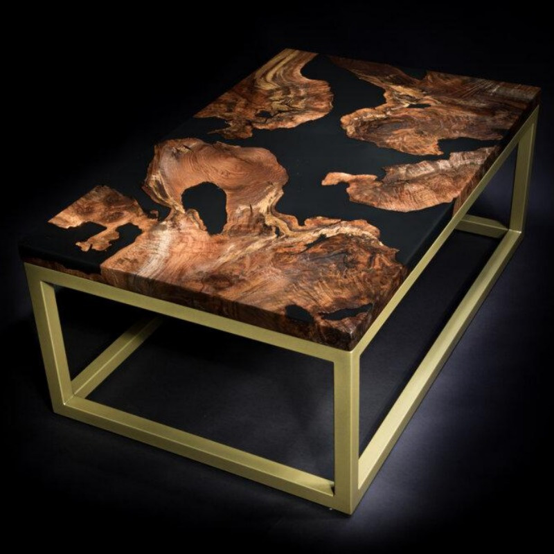 Stygian Solid Wood & Epoxy Resin Metal Frame Center Table